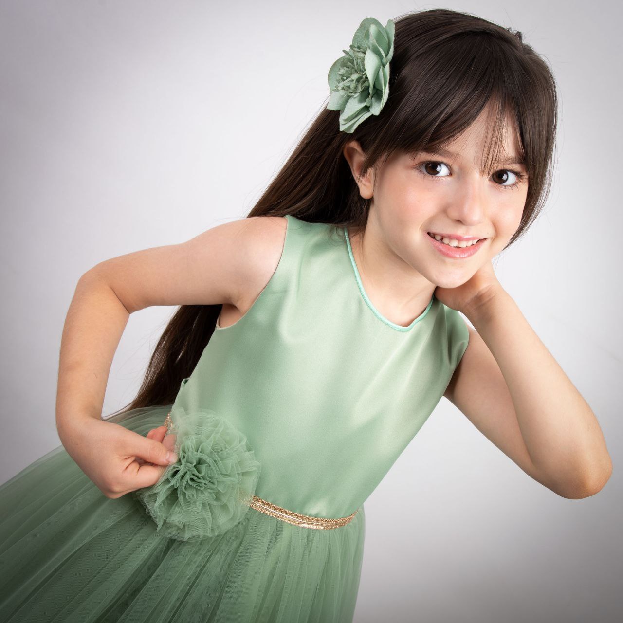 پیراهن دخترانه مجلسی سبز مدل پناه